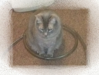 No stitchy picture today but I thought I would post a new one of the Cat in Charge. He is still supervising all activities in his domain and always wants to be "in the loop." Here he is in the middle of the aquarium cleaning operation a couple of months ago.
